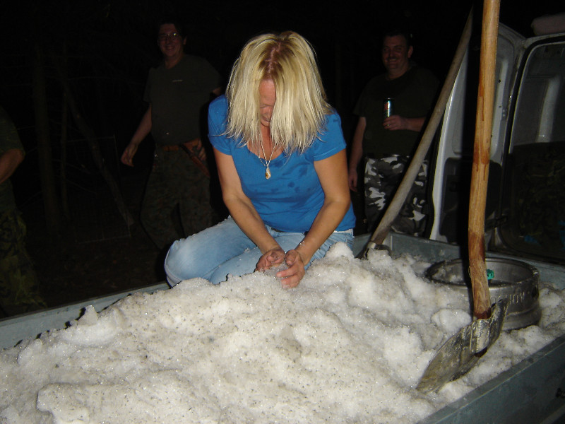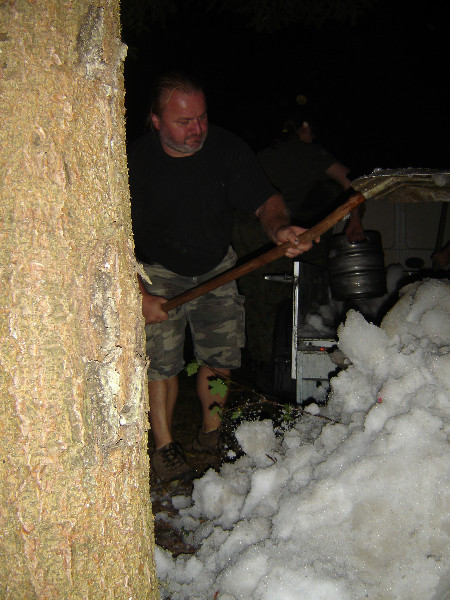 V pátek večer přijel Sovík s vozíkem plným sněhu. Sice z vozíku tekl potůček vody, ale sníh dovezl. Vyskládaly se bečky a zasypaly sněhem. Sněhu bylo dost i na koulovačku. Doplatila na ni Irča, která byla v oslabení a skončila ve sněhu.
