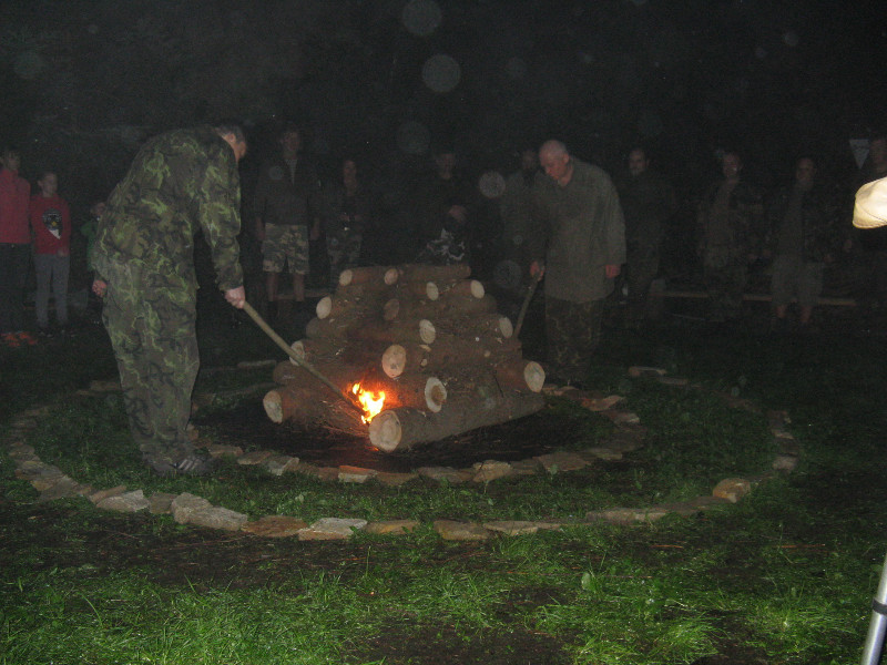 Oheň zaplál ihned a dřevo vydrželo až do nedělního rána.