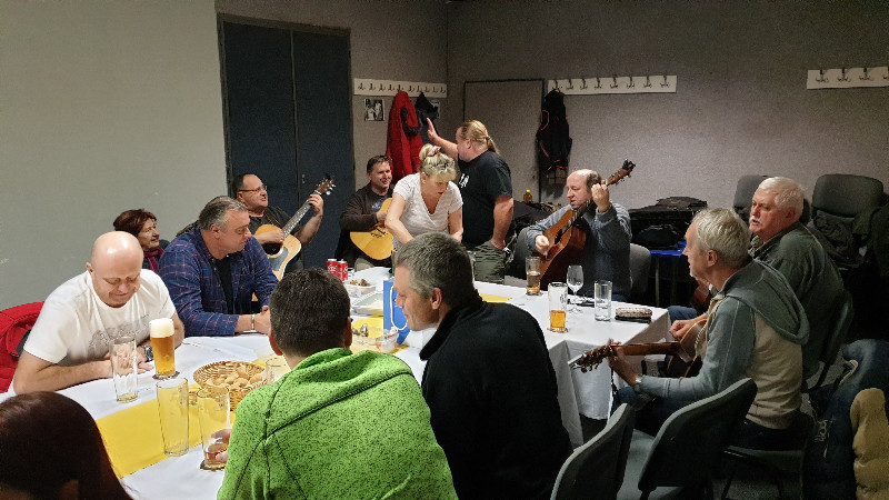 Osadní posezení s písničkou.